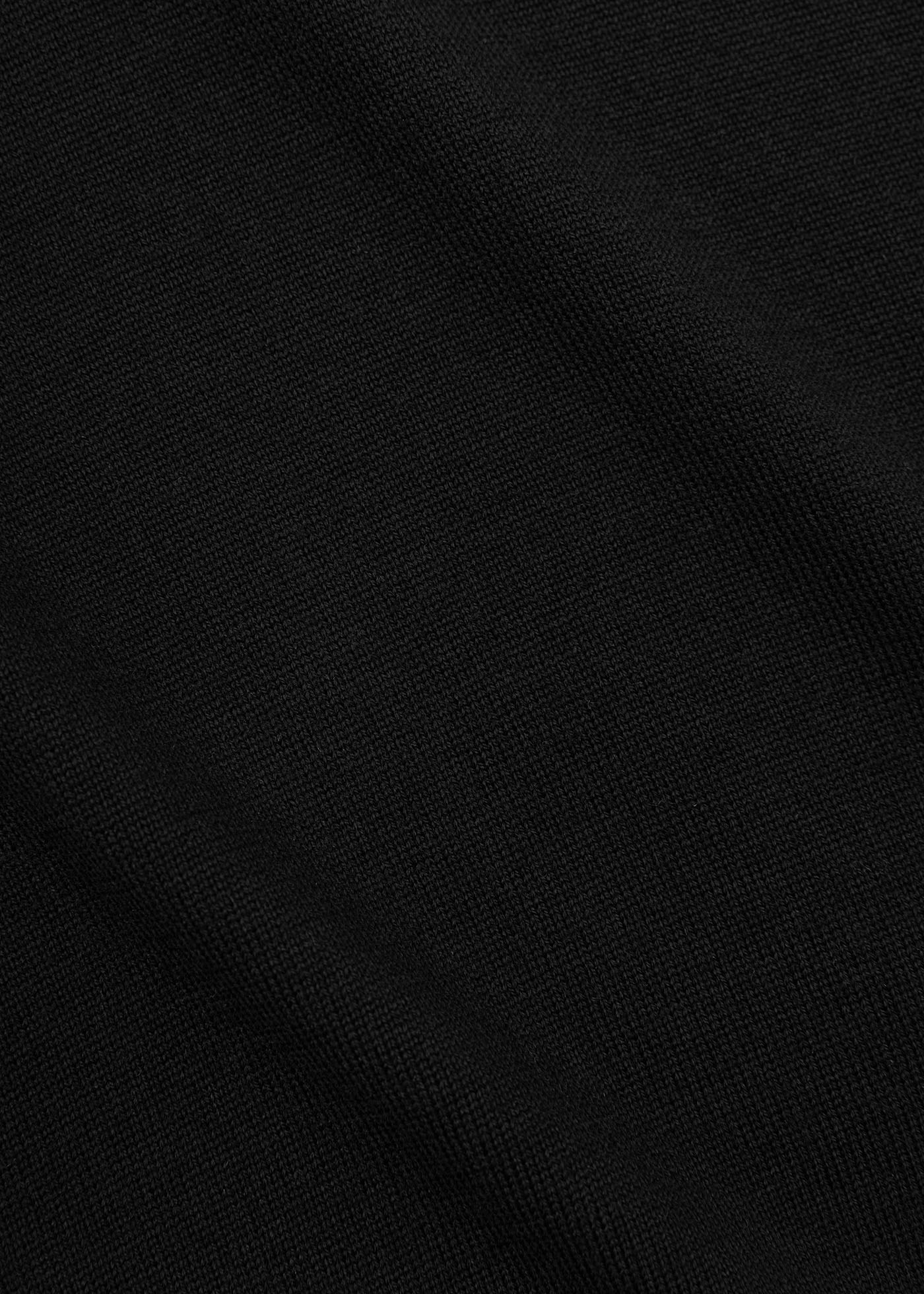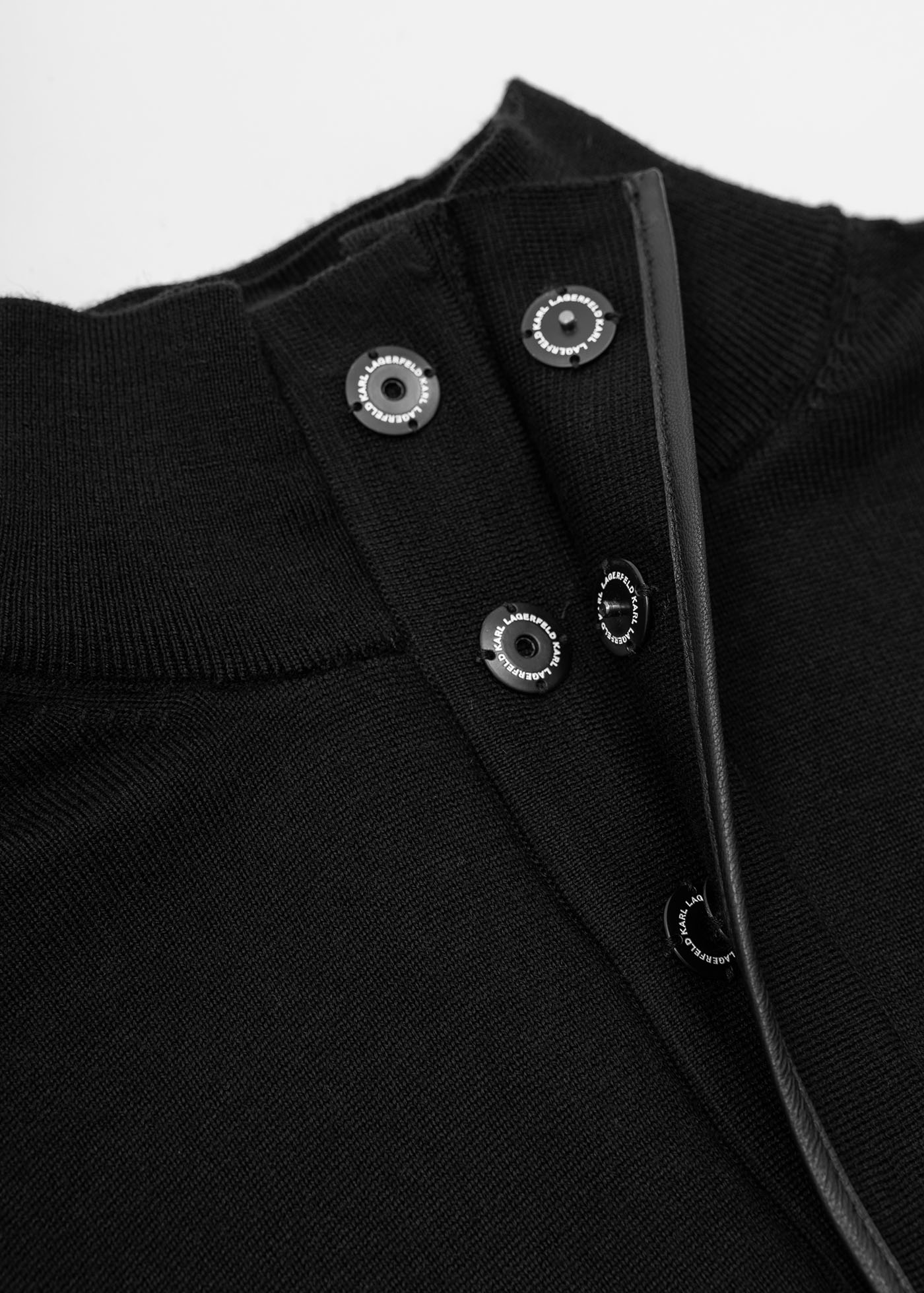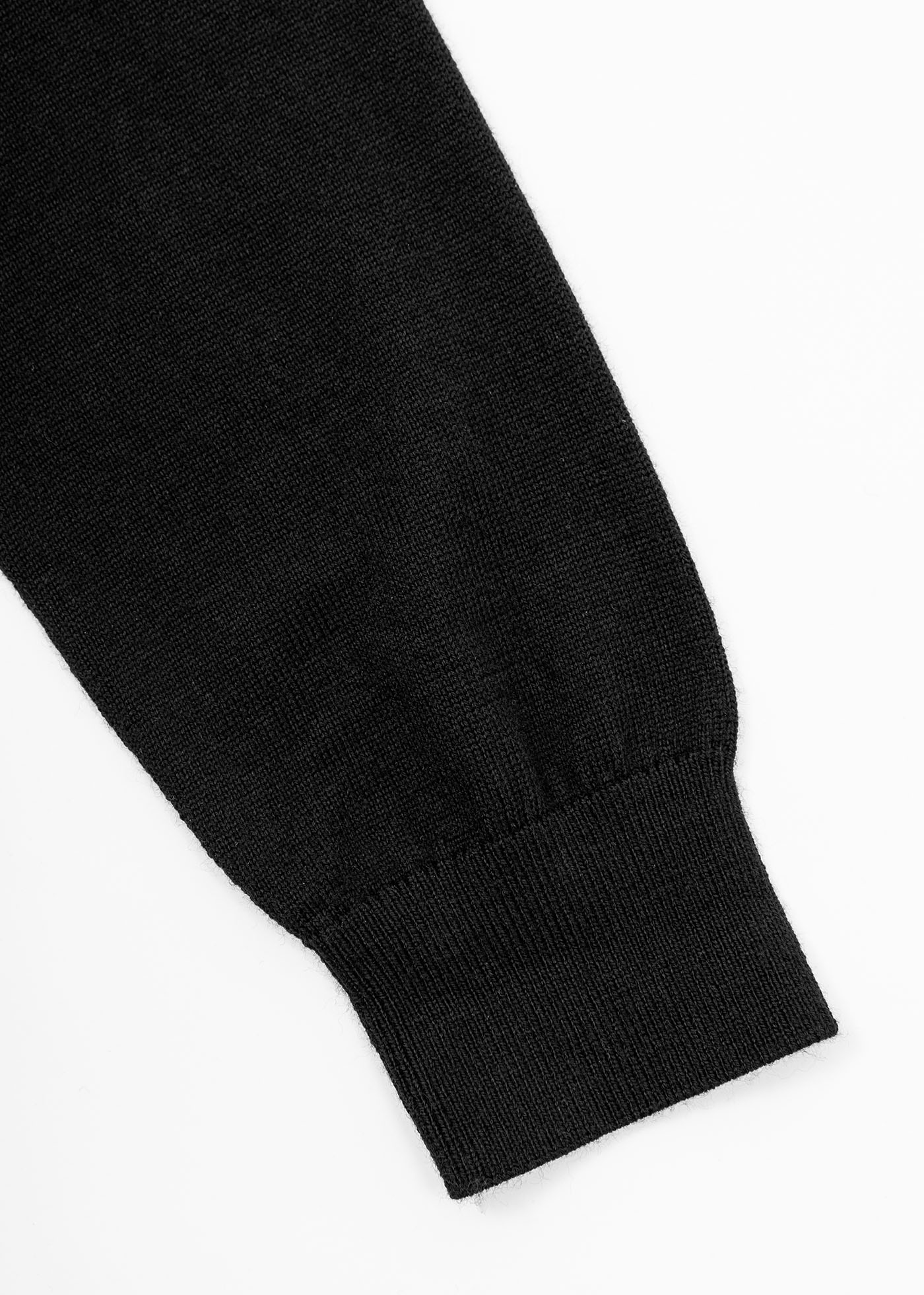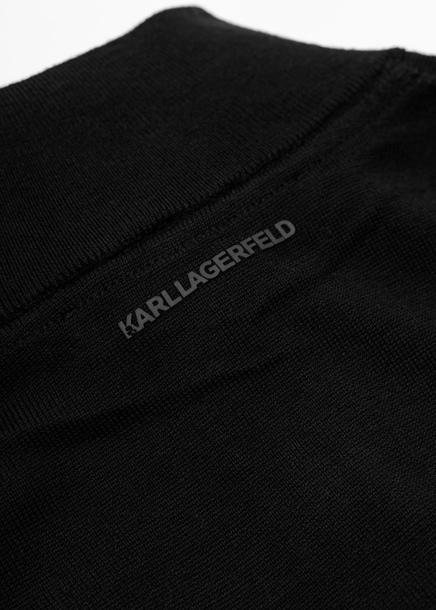 Aνδρικό pullover της εταιρείας Karl Lagerfeld. Ανήκει στην Knit Troyer συλλογή της εταιρείας και αποτελείται από ύφασμα υψηλής ποιότητας. Είναι μονόχρωμο και σε κανονική γραμμή, ενώ το λογότυπο διακοσμεί την μπλούζα στο ύψος της μέσης πάνω σε μεταλλική αγκράφα, όπως ακριβώς και στο πίσω μέρος του αυχένα. Τέλος, διαθέτει half zip λαιμόκοψη που συνδυάζεται με κουμπιά, με stand up γιακά και λάστιχο στα μανίκια και στην μέση για σταθερό κράτημα.