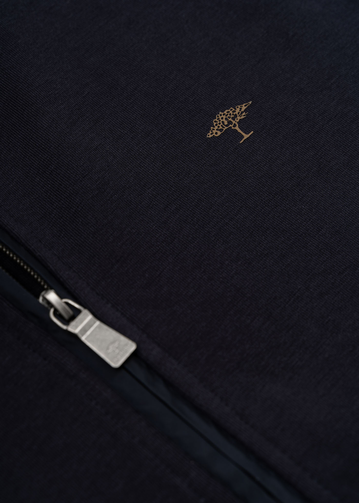 - Logo emblem at chest height