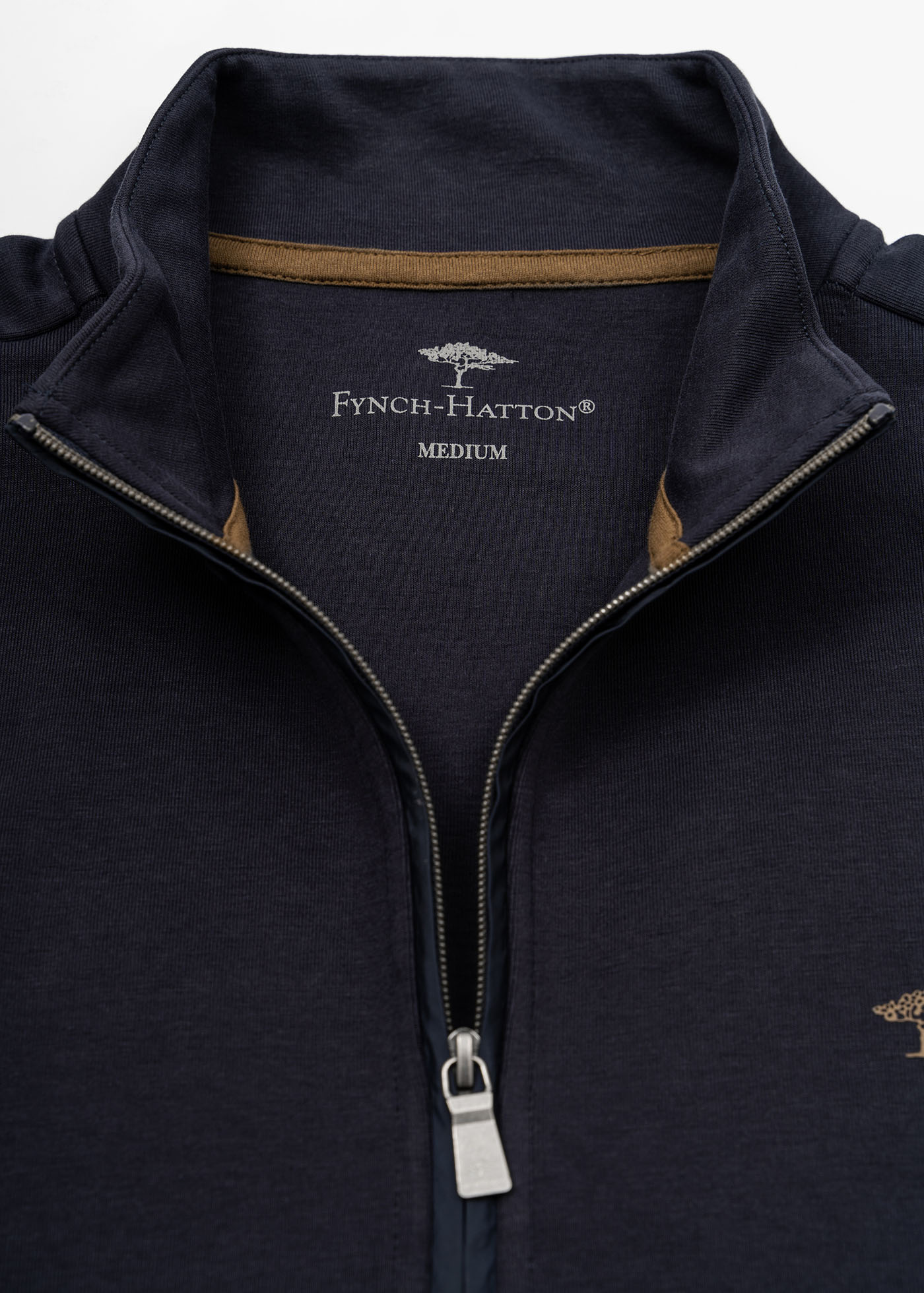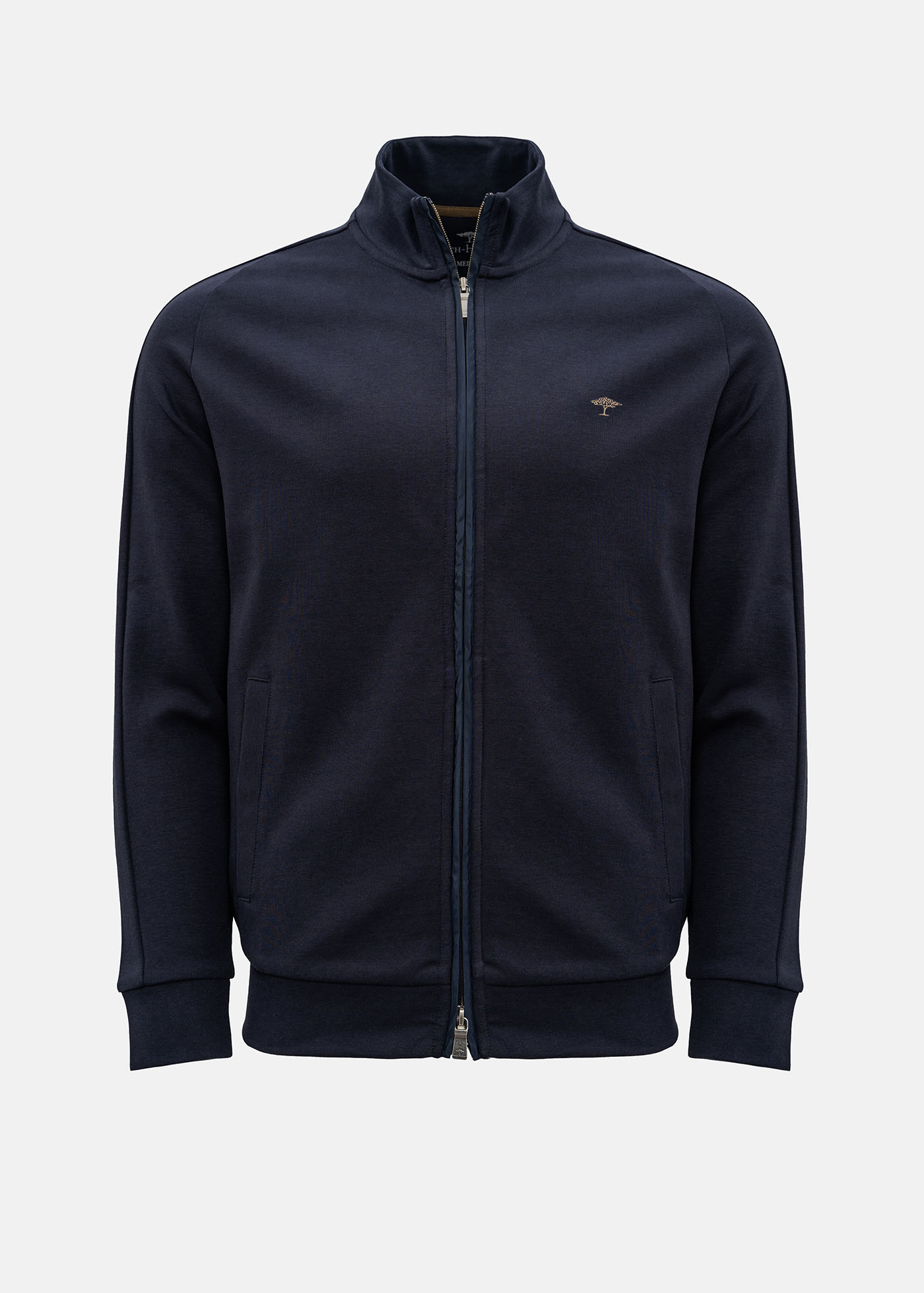 Aνδρικό ζακέτα της εταιρείας Fynch Hatton. Ανήκει στην Sweat Cardigan συλλογή της εταιρείας και αποτελείται από ύφασμα υψηλής ποιότητας. Είναι μονόχρωμη με sweat ύφανση και σε κανονική γραμμή, ενώ το λογότυπο την διακοσμεί στο ύψος του στήθους. Τέλος, διαθέτει full zip, δύο τσέπες στο πλάι και λάστιχο στα μανίκια και στην μέση για σταθερό κράτημα.