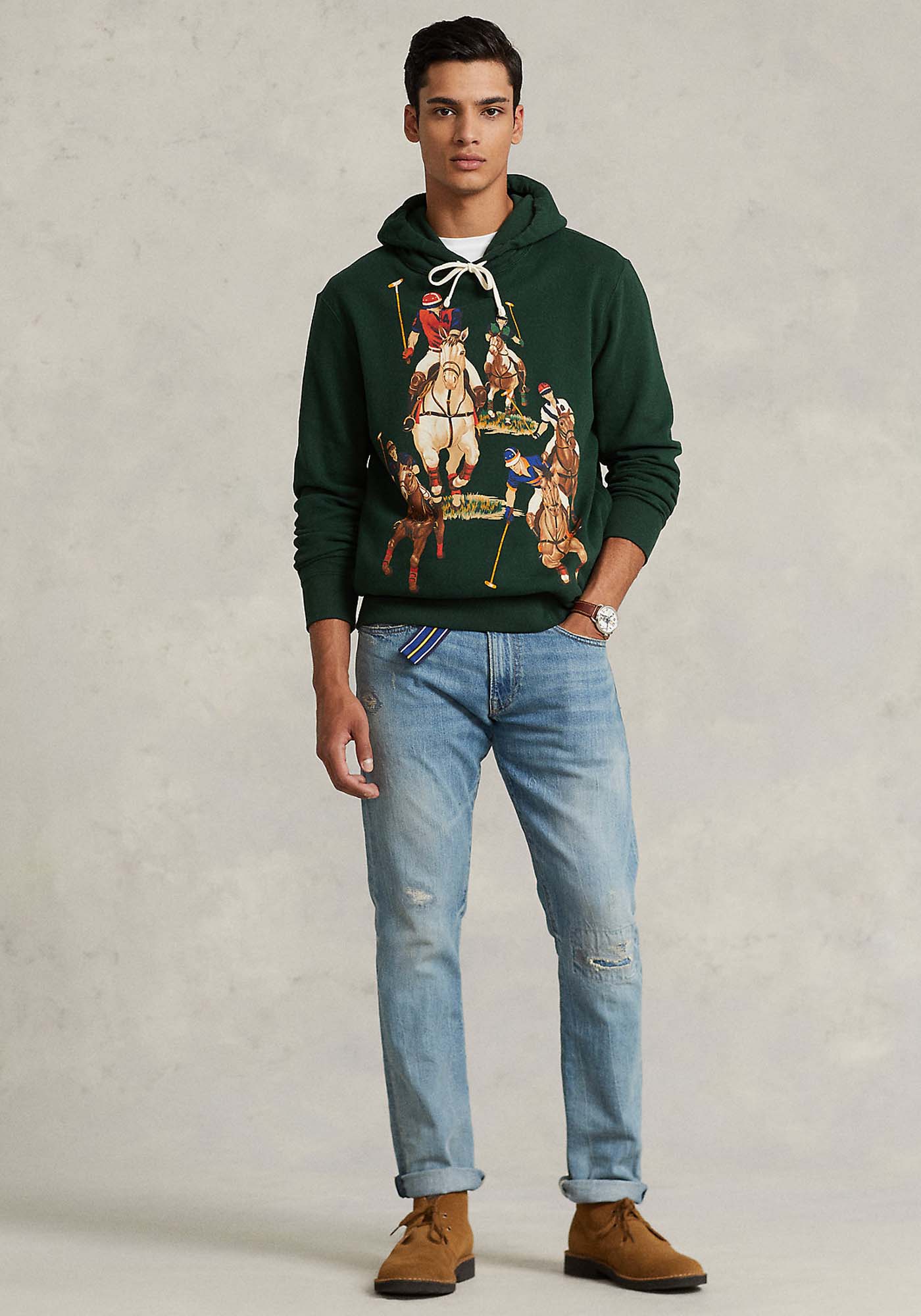 Aνδρικό Hoodie της εταιρείας Polo Ralph Lauren. Ανήκει στην Five Horsemen συλλογή της εταιρείας και αποτελείται από ύφασμα υψηλής ποιότητας για να κρατάει το σώμα ζεστό. Είναι μονόχρωμο και σε κανονική γραμμή, ενώ στο κέντρο απεικονίζονται οι πέντε καβαλάριδες. Τέλος, διαθέτει κουκούλα και λάστιχο σε μέση και μανίκια για σταθερό κράτημα.