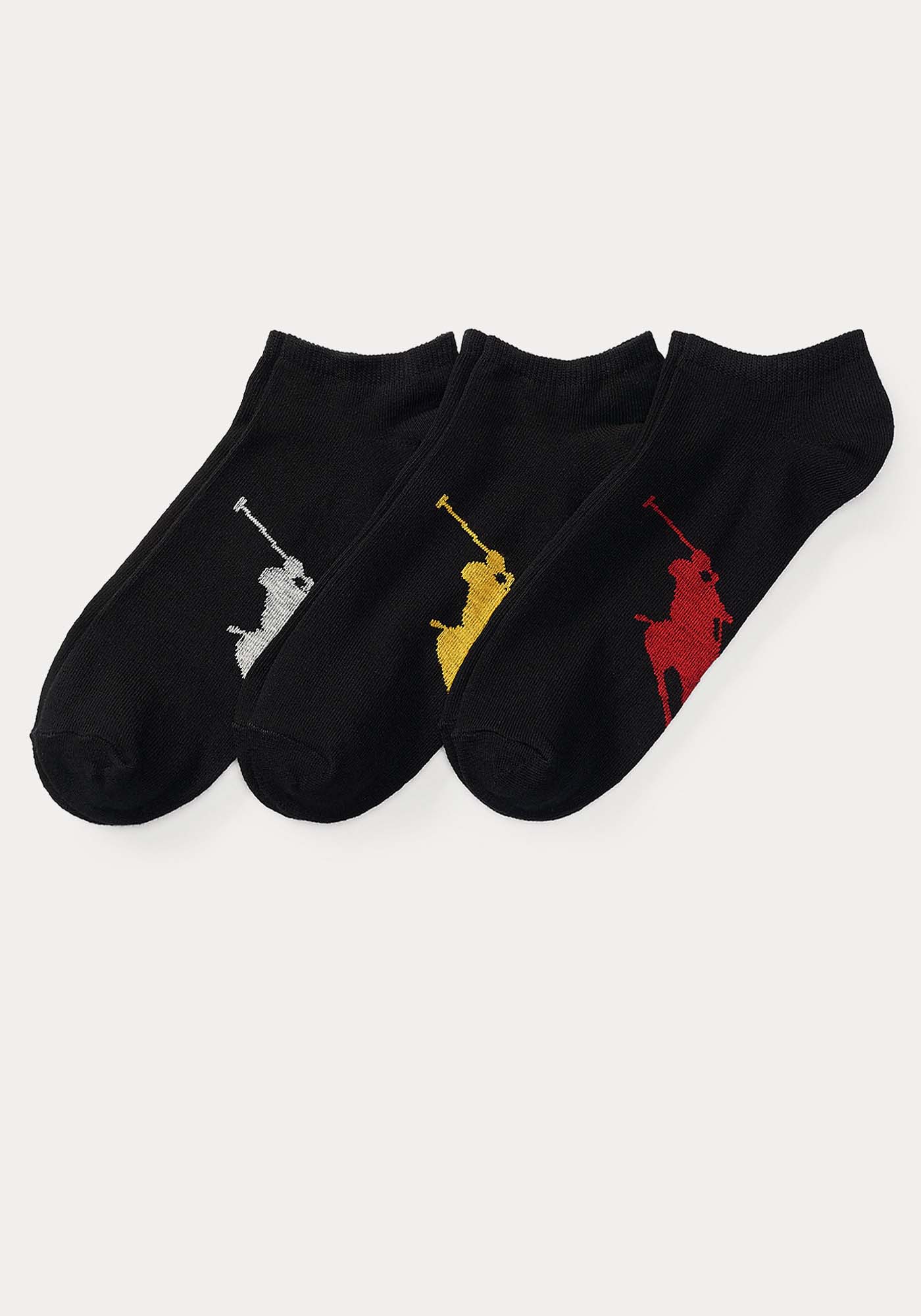 Aνδρικές κάλτσες της εταιρείας Polo Ralph Lauren. νήκουν στην Big Pony συλλογή και χαρακτηρίζονται από το Big Pony λογότυπο, το οποίο είναι σε χρώμα που προκαλεί αντίθεση. Είναι χαμηλές και το πακέτο αποτελείται από τρία τεμάχια.