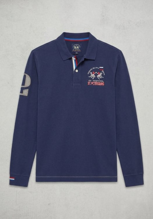 La Martina Polo μπλούζα σε κανονική γραμμή - 3LMQMP319 07017 Navy
